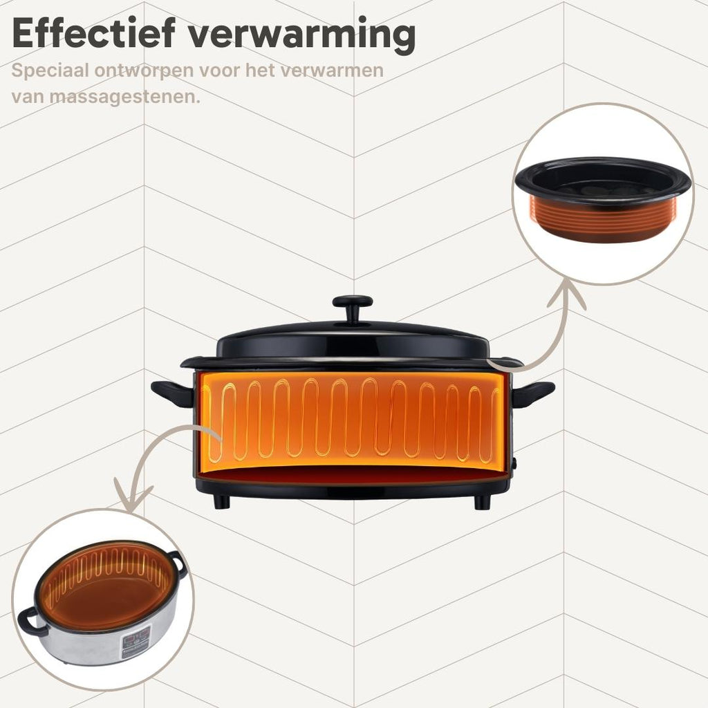 Ben je opzoek naar een mooi en compacte hotstoneheater? Dan is deze hotstoneheater van 6 liter de oplossing! Met het gebruik van deze heater verwarm je moeiteloos je massagestenen en kun je zelf in de tussentijd iets anders gaan doen. De heater heeft een klein formaat waardoor deze niet te veel ruimte in beslag neemt.