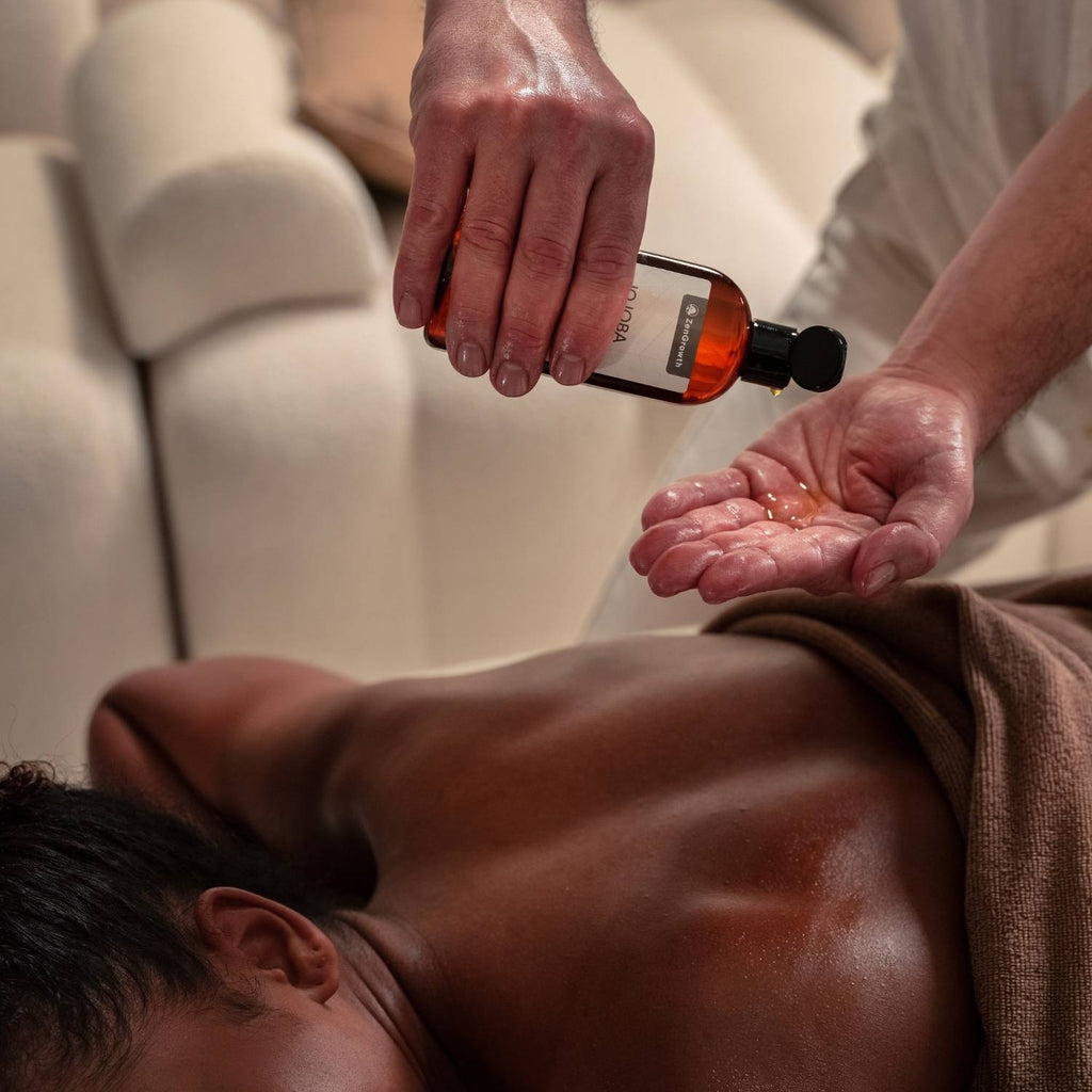 De olie maakt de huid soepel, gehydrateerd en zichtbaar rustiger, zonder poriën te verstoppen. Jojobaolie is ideaal voor gezichtsmassages, bindweefselmassages, deep tissue en ontspanningsbehandelingen. De olie kan ook worden gebruikt bij mensen met een notenallergie.