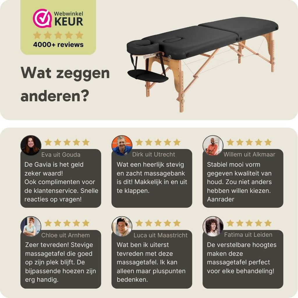 De ZenGrowth Gavia massagetafel is speciaal ontworpen voor masseurs die op zoek zijn naar een goede tafel, maar niet meteen willen investeren in bijvoorbeeld de Belverde 2.0 massagetafel. De Gavia massagetafel is de perfecte oplossing voor iedereen die een budget inklapbare massagetafel wilt kopen, maar toch net een beetje extra wilt betalen voor meer ligcomfort!